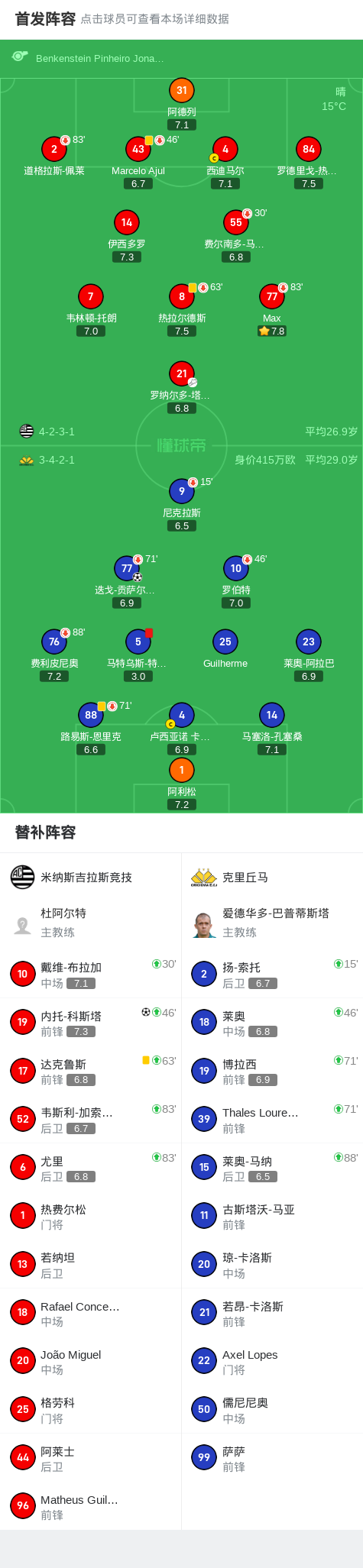 米纳斯吉拉斯竞技1-1克里丘马,迭戈-贡萨尔维斯破门,内托-科斯塔扳平比分