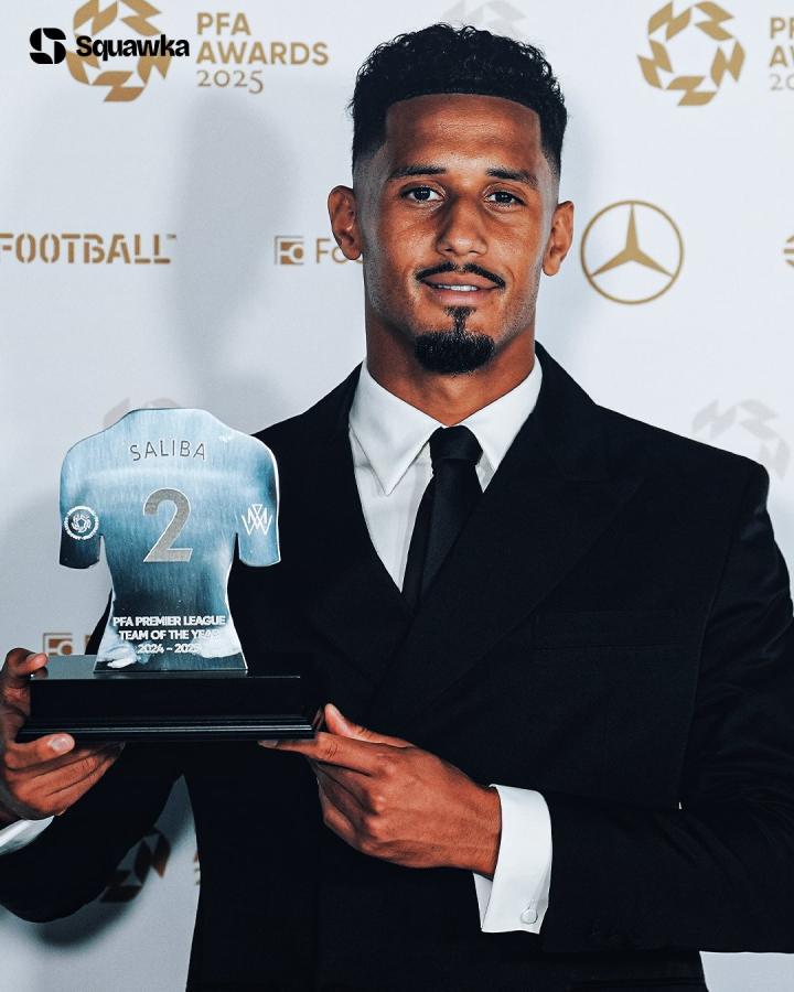 PFA英超年度最佳阵容揭晓,萨利巴是唯一过去3年都入选的球员