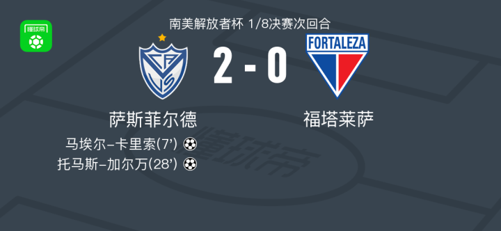 萨斯菲尔德2-0福塔莱萨,马埃尔-卡里索建功,托马斯-加尔万锁定胜局