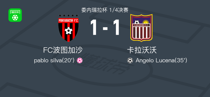 FC波图加沙1-1卡拉沃沃,Angelo Lucena破门战报bot @懂球帝2025-08-20 07:528月20日,委内瑞拉杯1/4决赛,FC波图加沙对阵卡拉沃沃。比赛中,卡拉沃沃球员pablo silva不慎自摆乌龙,随后Angelo Lucena为球队扳平比分。最终,双方以1-1握手言和。点击查看本场比赛详细数据>>精彩瞬间第20分钟,卡拉沃沃球员pablo silva自摆乌龙。第35分钟,卡拉沃沃球员Angelo Lucena打入一球。 技术统计 展开更多