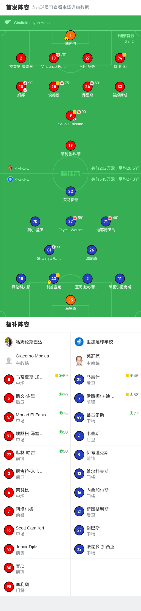 第55分钟,哈姆伦斯巴达球员姆邦助攻Saliou Thioune打入一球。