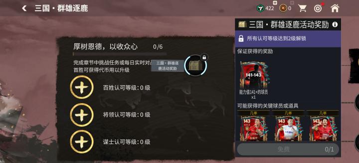 章节内的赛事可以根据解锁主将球员不同分为四组,每组赛事完成后可以分别解锁一名141三国·群雄逐鹿主将球员的定向、特惠交换。