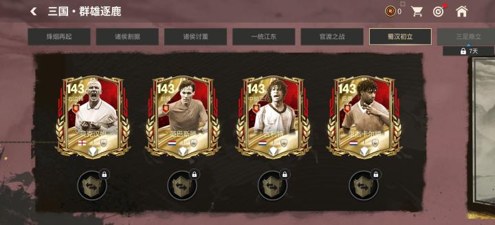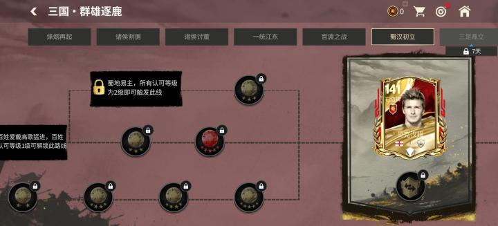 蜀汉初立章节中,玩家可以完成章节赛事,解锁里杰卡尔德、范巴斯滕、古利特、贝克汉姆四位三国·群雄逐鹿主将球员的141、143能力值球员卡定向交换。