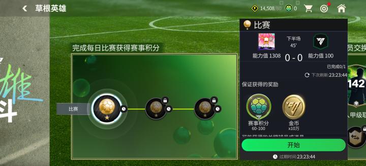 进入甲级联赛,可解锁142草根英雄球员卡交换,限量2次;