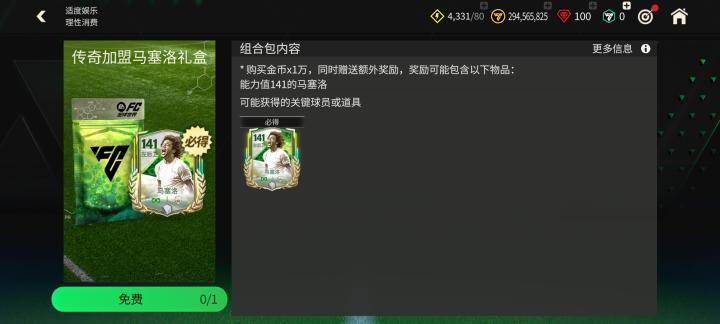 141能力值马塞洛则可以通过商城礼包免费领取。其余球员玩家可以通过球员交换-草根英雄对应能力值卡池交换获取。