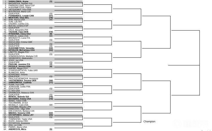 美网单打签表出炉,王欣瑜领衔6位中国选手直通正赛