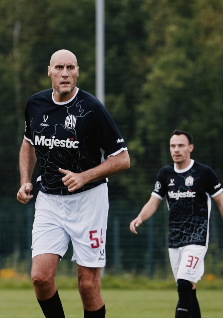 他透露自己是受俱乐部主席邀请加盟,因二人曾在篮球联赛中同队效力。虽然他的球队最终1-0战胜卡卢加FC,但这位巨型前锋仍略带遗憾:"对方门将表现神勇,下次比赛我会继续努力破门。"