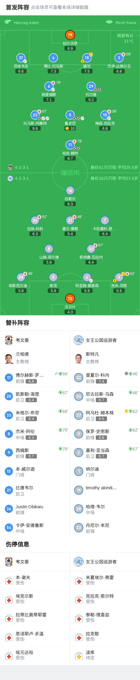第35分钟,考文垂球员格里姆斯助攻鲁多尼打入一球。