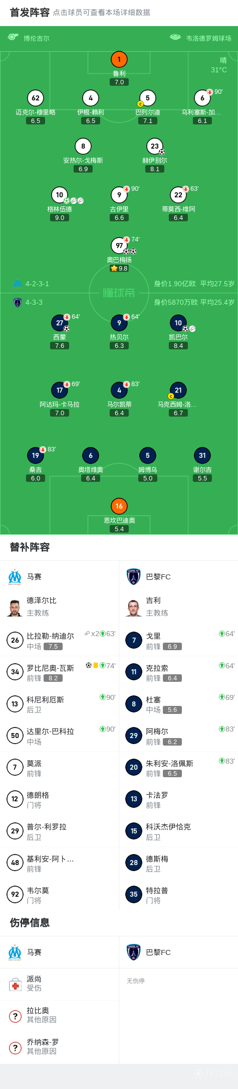 第25分钟,格林伍德开出角球,奥巴梅扬破门,马赛2-0巴黎FC