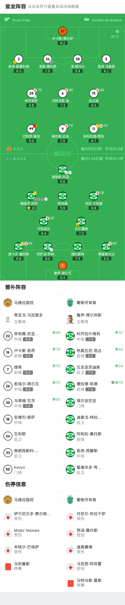 北京时间8月24日葡萄牙足球超级联赛 联赛 第3轮,马德拉国民主场对阵葡萄牙体育。马德拉国民莱奥-桑托斯破门。葡萄牙体育佩德罗-贡萨尔维斯帽子戏法,康拉德-哈德破门。最终比分马德拉国民 1-4 葡萄牙体育。