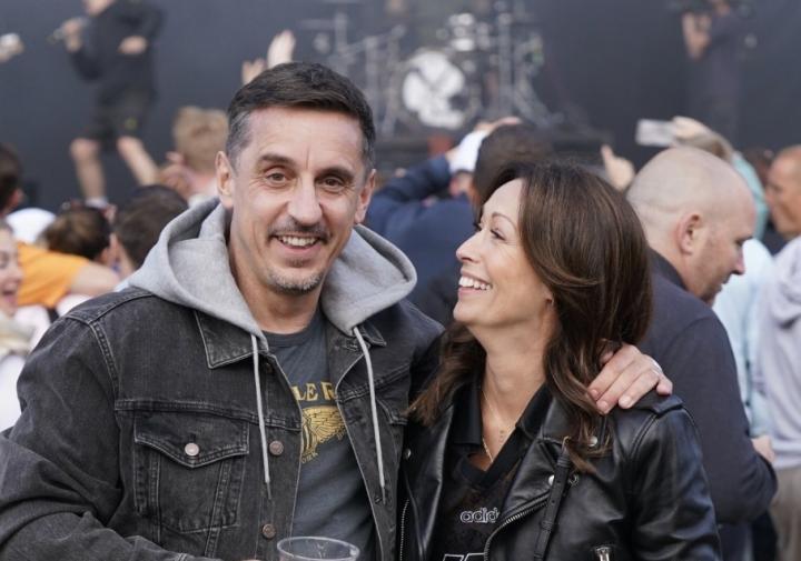 恩爱,加里-内维尔和妻子一起去纽卡斯尔音乐节
