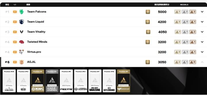 而AG.AL在本次EWC俱乐部总积分定格在3050,位居全部队伍第6位,参与9个项目,收获王者荣耀、CF两座冠军奖杯,以及英雄联盟项目的亚军。
