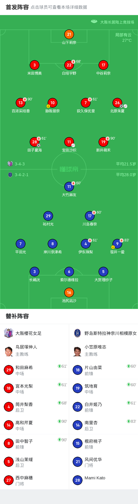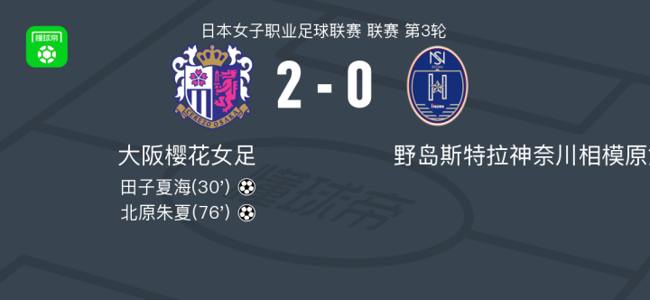 大阪樱花女足2-0野岛斯特拉神奈川相模原女足,田子夏海破门,北原朱夏锁定胜局