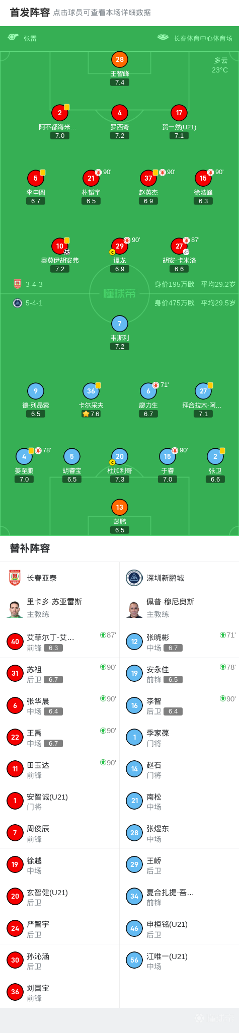 亚泰1-0新鹏城,奥莫伊胡安弗制胜
