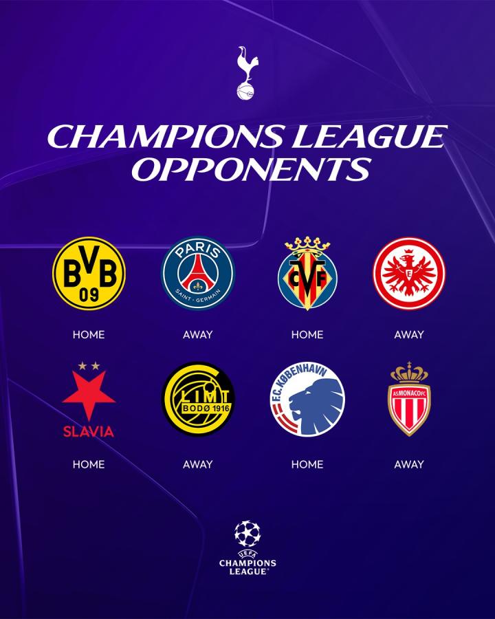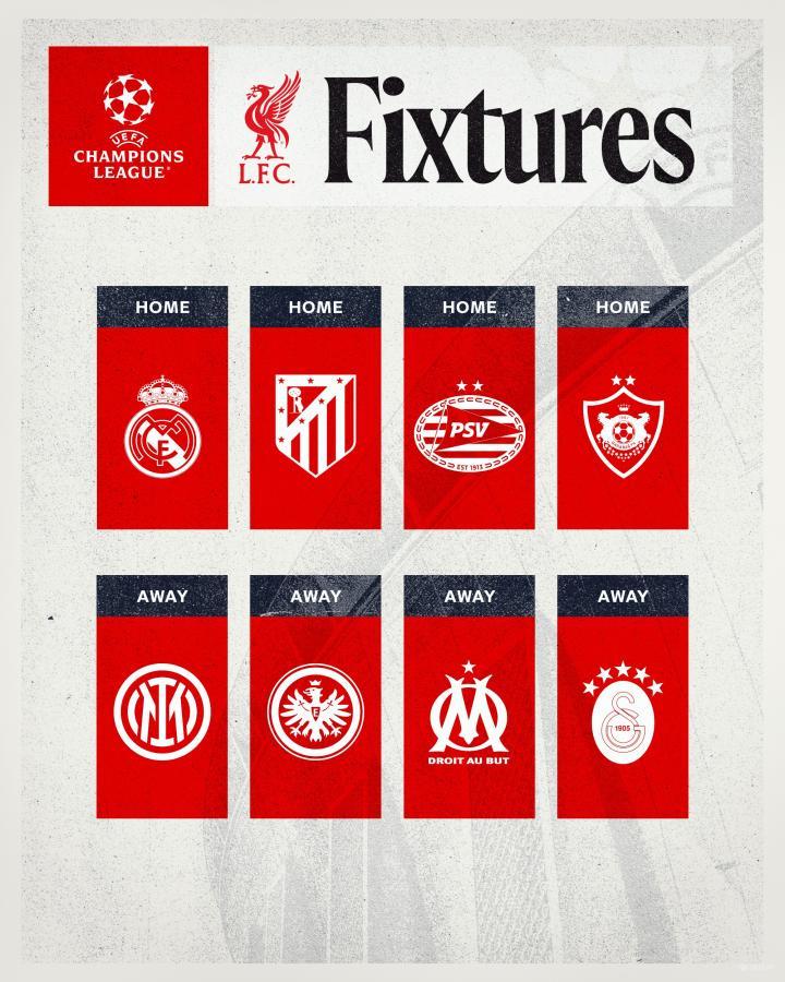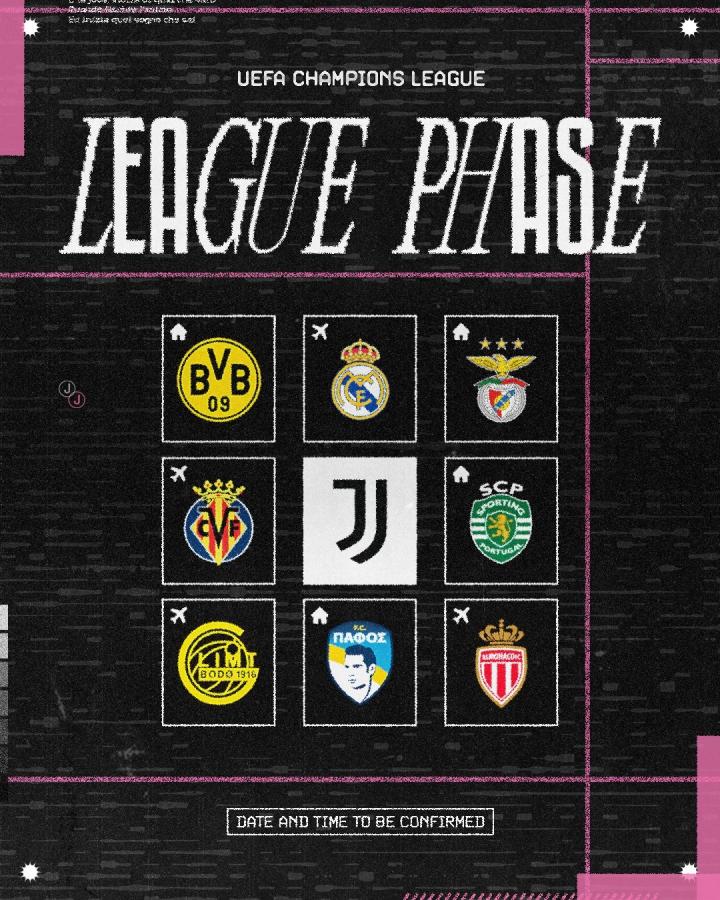 每支球队的欧冠联赛阶段赛程及开球时间将在8月30日前公布。