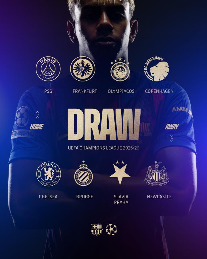2025-26赛季欧冠抽签:皇马战曼城+远征凯拉特,巴萨vs巴黎