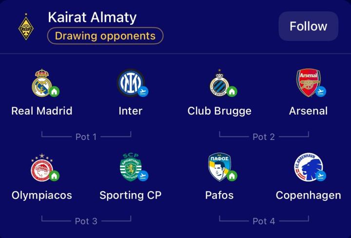 阿拉木图凯拉特客场对手