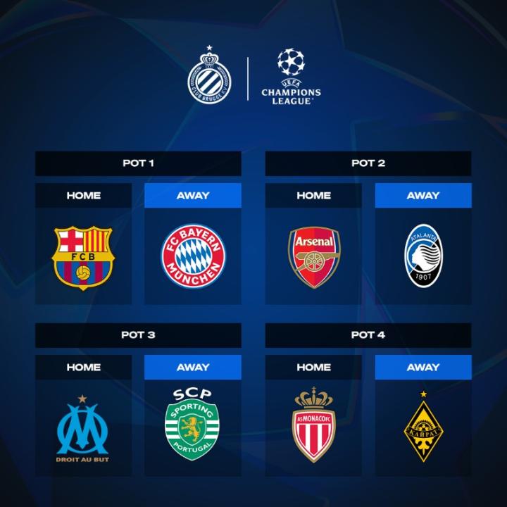 第二档:阿森纳、勒沃库森、马德里竞技、本菲卡、亚特兰大、比利亚雷亚尔、尤文图斯、法兰克福、布鲁日