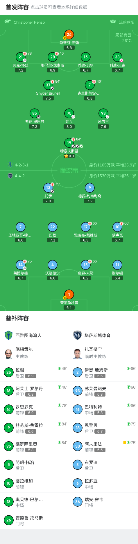 北京时间8月25日美国职业大联盟 常规赛,西雅图海湾人主场对阵堪萨斯城体育。西雅图海湾人考萨-里恩齐破门,穆索夫斯基帽子戏法,Snyder Brunell破门,科迪-贝克自摆乌龙。堪萨斯城体育托伊破门。最终比分西雅图海湾人 5-2 堪萨斯城体育。