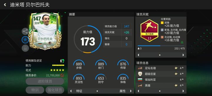 盘带方面,贝尔巴托夫的花式幅度较大,一对一突破时的摆脱效率非常高,不过在前场阵地战中,一旦对手进行多人包夹或近身连续干扰,建议还是让贝尔巴托夫及时分球。