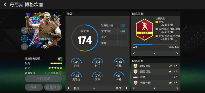 游戏中,草根英雄球员博格坎普配备了禁区猛虎天赋,花式方面,五星花式星级结合马赛回旋的配置让他具备了一定的前场摆脱能力。