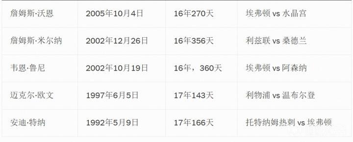 沃恩是从英超常青树——詹姆斯-米尔纳手中夺走了这一纪录,米尔纳在埃弗顿少年鲁尼攻破阿森纳球门仅仅两个月后,打破了他的纪录并保持了两年半的时间。在那之前,纪录的拥有者分别是利物浦的迈克尔-欧文,以及再往前的托特纳姆热刺的安迪-特纳。