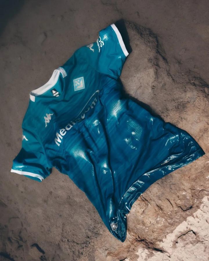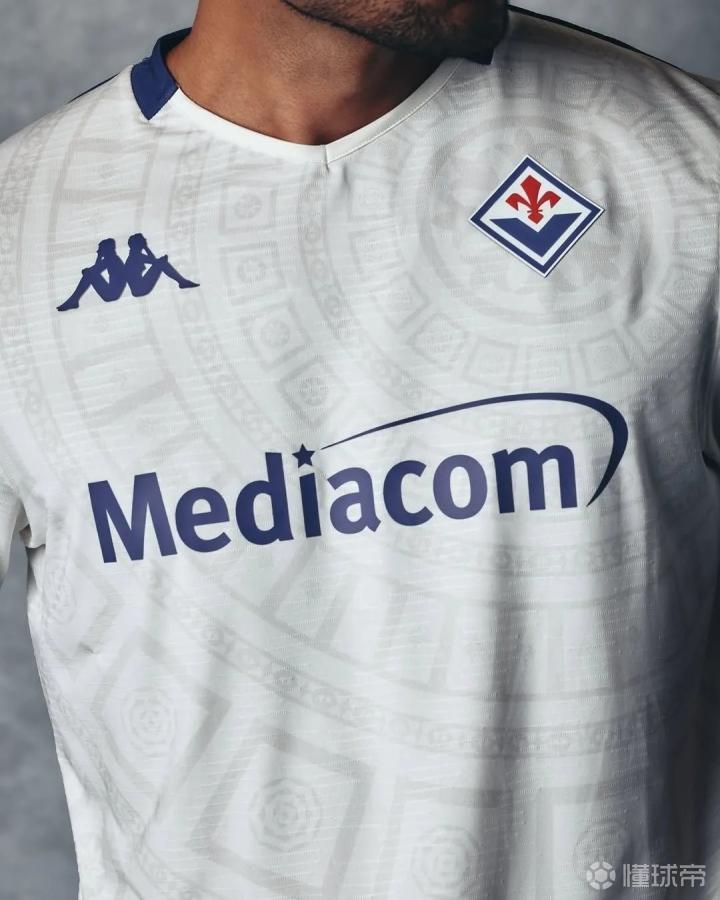 这件球衣的颜色和暗纹的灵感都来自于佛罗伦萨的阿诺河,球衣上的暗纹有一个不规则的由密到疏的变化,但如果你剥离掉球队和赞助商给出的信息,这个花纹显得有些廉价了,但是Kappa愣是把10块钱的球衣拍出了100块的感觉。
