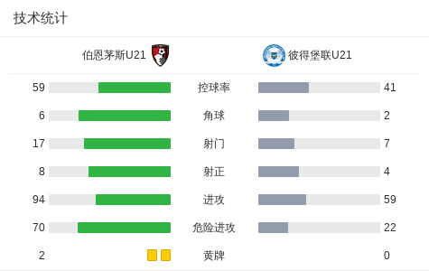 彼得堡联U21 1-0伯恩茅斯U21,joe davies一击制胜战报bot @懂球帝2025-08-25 20:59北京时间8月25日英乙U21联赛第8轮,伯恩茅斯U21主场迎战彼得堡联U21。比赛中,彼得堡联U21球员Joe Davies打入全场唯一进球。最终比分定格为伯恩茅斯U21 0-1 彼得堡联U21。点击查看本场比赛详细数据>>精彩瞬间第73分钟,彼得堡联U21球员joe davies打入一球。 技术统计 展开更多