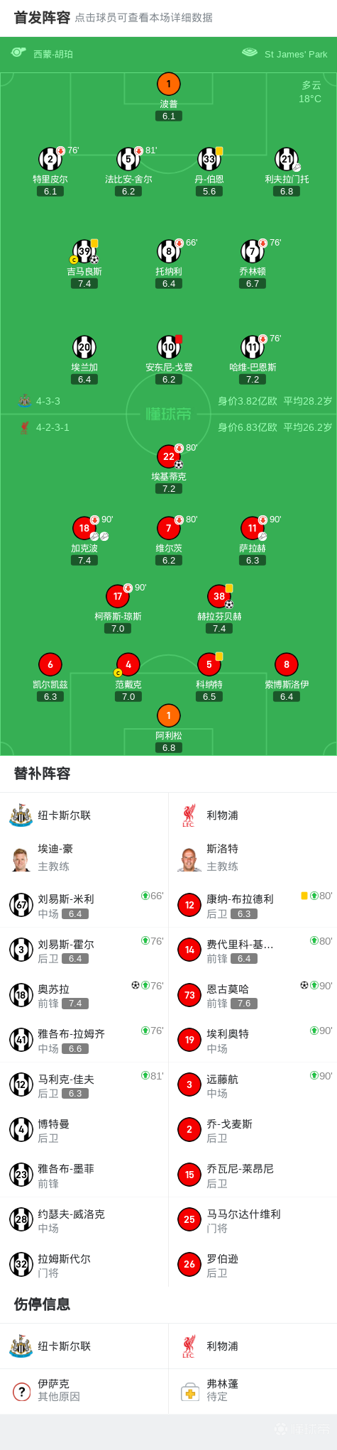 第31分钟,科纳特传球被断,纽卡打出快速反击阿利松提前出击将球没收