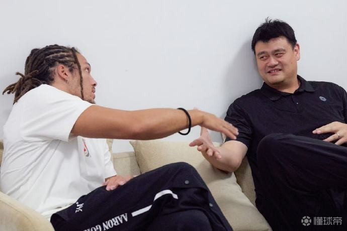姚明此前在杭州参加活动,从杭州返沪后他马不停蹄来到戈登所在的片场对其进行探班慰问,二人坐在沙发上进行了一番交谈。