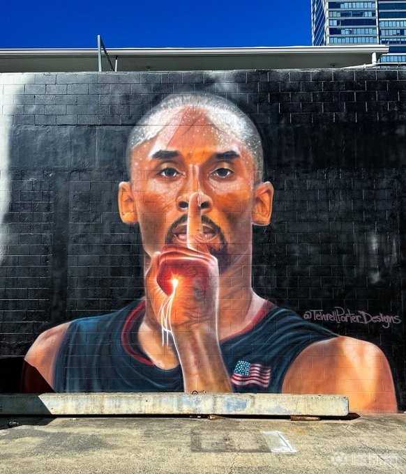 致敬经典,夏威夷一画家在涂鸦墙画出科比08奥运噤声庆祝造型
