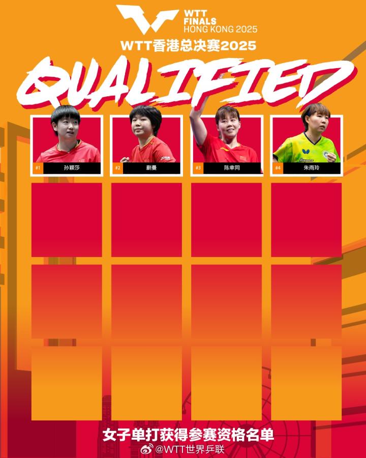 北京时间8月26日,WTT官方公布2025年香港总决赛首批入围名单,孙颖莎、王楚钦领衔国乒多人入选。