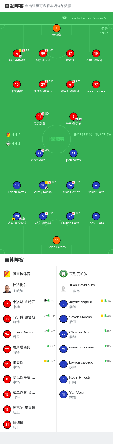 北京时间8月27日,哥伦比亚杯1/8决赛,佩雷拉体育与瓦勒度帕尔展开激烈对决。比赛中,瓦勒度帕尔的Arney Rocha率先破门,随后胡安-鲁维亚诺再下一城。佩雷拉体育由萨米-梅尔赫扳回一球,紧接着胡安-金特罗破门,将比分差距缩小。下半场,胡安-鲁维亚诺主罚点球命中,再度为瓦勒度帕尔取得领先。随后佩雷拉体育由卡洛斯-金特罗破门,将比分反超。比赛临近结束时,萨米-梅尔赫再入一球,完成梅开二度。最终,佩雷拉体育以4比3逆转战胜瓦勒度帕尔。