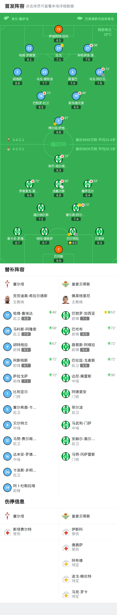 第45分钟,皇家贝蒂斯球员洛塞尔索助攻巴尔特拉打入一球。