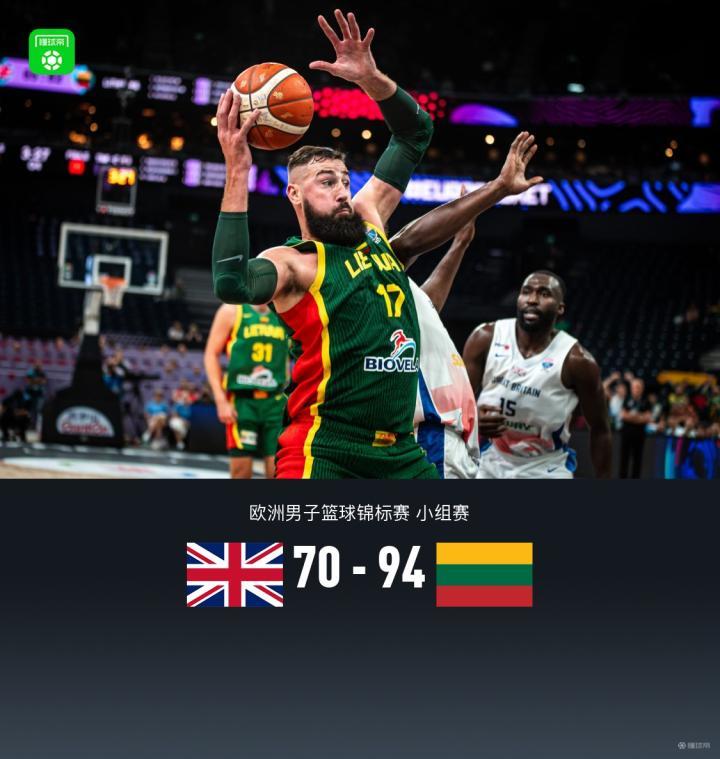 立陶宛94-70大胜英国,瓦兰丘纳斯18+9,图贝利17+7