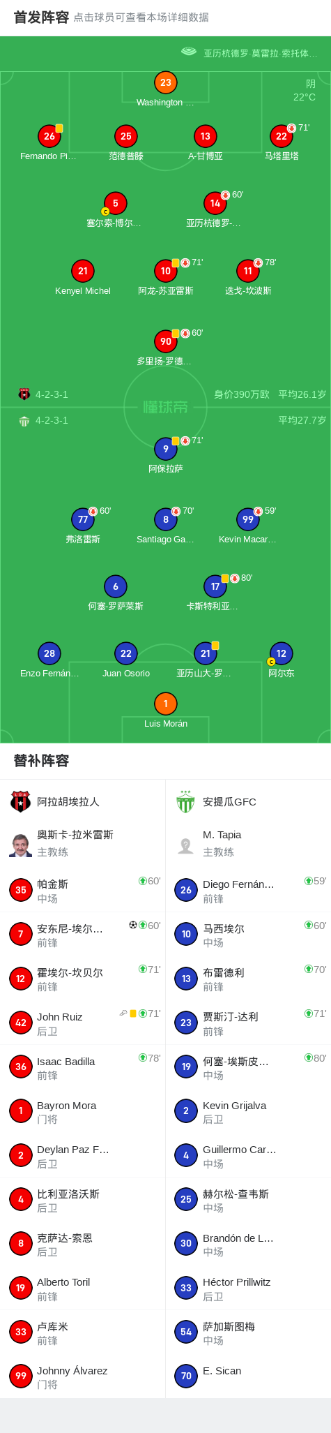 第83分钟,阿拉胡埃拉人球员John Ruiz助攻安东尼-埃尔南德斯打入一球。