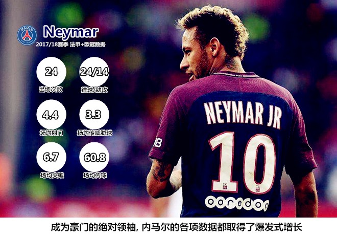 内马尔&姆巴佩对巴黎圣日耳曼到底有多重要?巴黎圣日耳曼在本赛季已经结束的31场法甲和欧冠比赛中总攻打进101球,内马尔(25球14助攻)和姆巴佩(13球11助攻)直接参与了其中的一半,考虑到打进27球的中锋卡瓦尼非常依赖于锋线搭档的近距离支援,两名青年才俊对整个巴黎进攻体系的支撑作用还无法完全用数据来体现,法甲巨人的这轮总价达到4亿欧元的投资可谓物有所值。