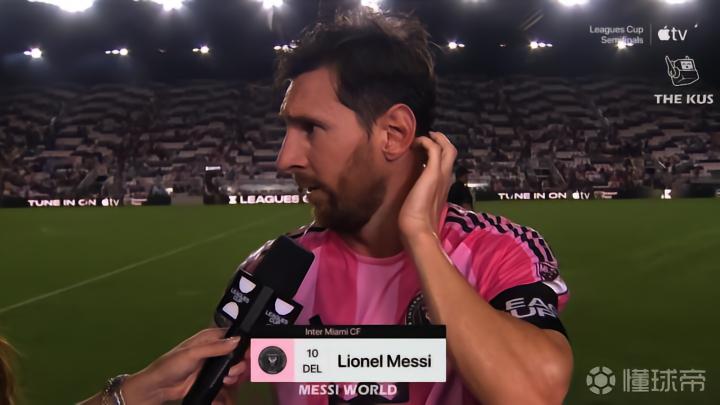 北美联赛杯半决赛迈阿密国际3-1战胜奥兰多城赛后,梅开二度的梅西接受了赛后瞬采。