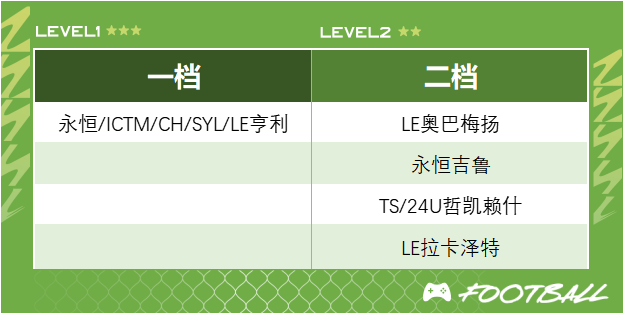 阿森纳套的边锋人才济济,而且都是很典型的爆破突击手,因此前场进攻速率完全没问题。双五脚的格纳布里、右脚的威廉以及左脚的萨卡都是大部分玩家的优先选择,相比之下威廉的实战速率最快,爆炸头模型在观感上也有所加成,他的手感几乎是LE卡中最丝滑的一档,即便是接花式后的射门准星也不会差。