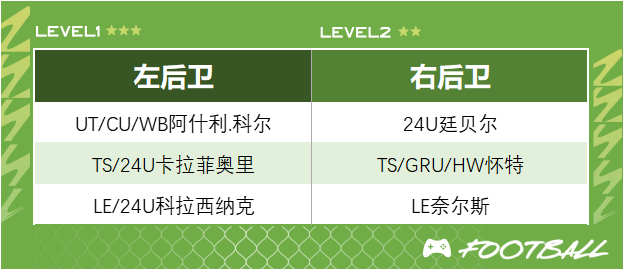 阿森纳套纯左脚的几位边后卫都有各自的短板,阿什利.科尔模型较小,容易被对手利用对抗键生吃;而另外两名球员速率偏慢,回追能力不足。因此,还是建议使用廷贝尔客串左后卫位置,右后卫则推荐模型不错的怀特,在换防对手中锋的时候不会有身体劣势。