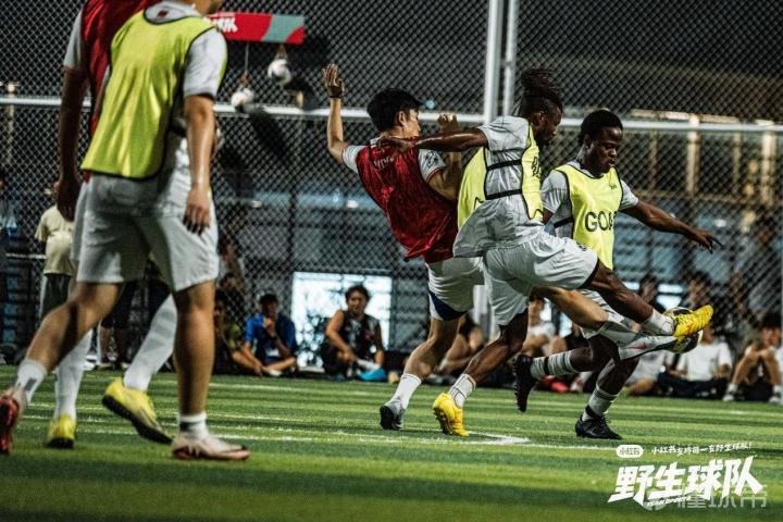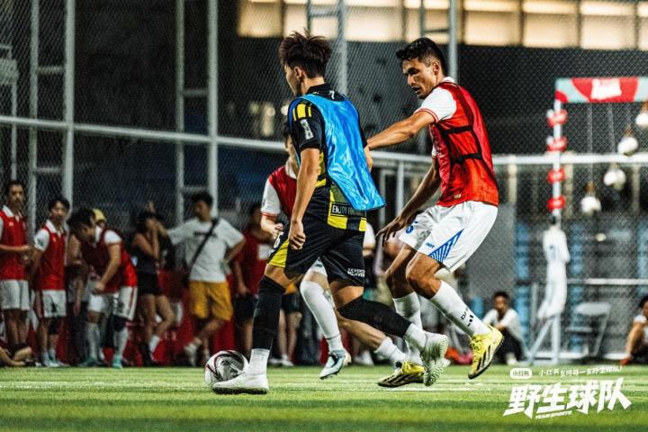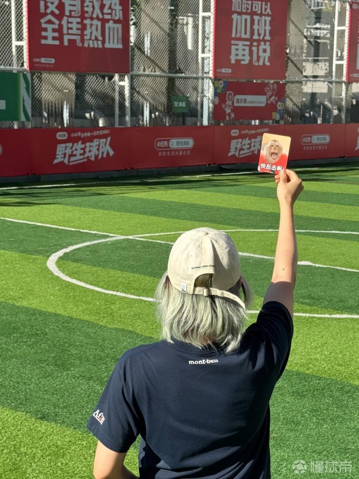 四支野生球队两两对阵,展开了5V5的对决。双方遵循五人制足球规则,每场20分钟,由主持人进行现场解说。主裁判手持神秘的表情包卡牌,有夸赞表现的,有表达遗憾的,连卡牌在这场比赛里都具有了生命力。