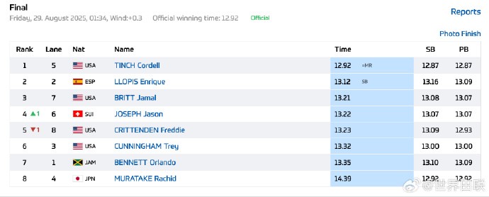 男子110米栏:廷奇跑出12秒92,首夺钻石联赛总冠军gaoniu @懂球帝2025-08-29 10:528月29日,钻石联赛总决赛男子110米栏,🇺🇸廷奇跑出追平赛会纪录的12秒92(顺风0.3米/秒),生涯首夺钻石联赛总冠军。这也是他本赛季第三次跑进13秒。展开更多