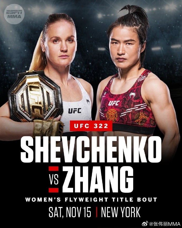 官方:张伟丽将登陆蝇量级,挑战冠军舍甫琴科gaoniu2025-08-29 12:018月29日,UFC总裁白大拿宣布:11月15日UFC322联合主赛——女子蝇量级冠军战中,中国选手张伟丽将对阵“子弹”瓦伦蒂娜-舍甫琴科。由于张伟丽升级的同时放弃腰带,UFC女子草量级冠军头衔将被空置。随后,张伟丽更新社媒写道:UFC 322,美国纽约11月15号.继续向前迈进.保持积极向上的心态.突破一切,超越自我。一切都是全新的。加油. 展开更多