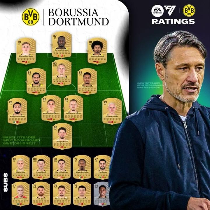 多特FC26评分:吉拉西87、科贝尔86、施洛特贝克85、小贝林74