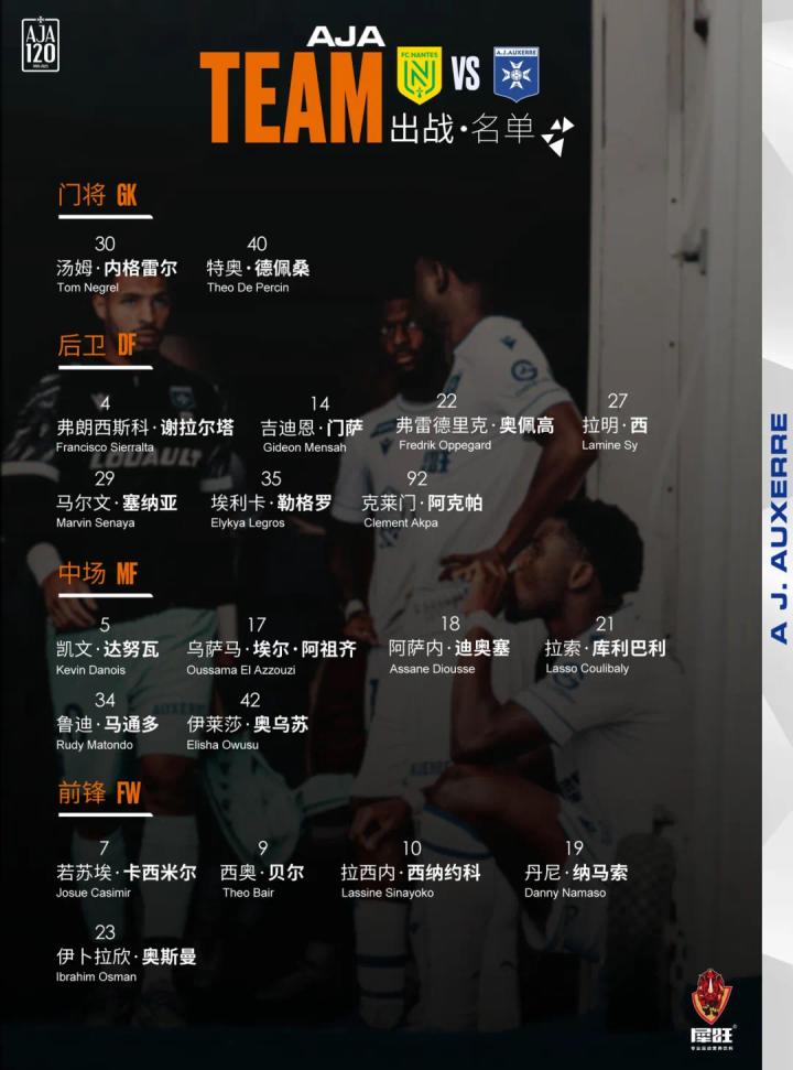 新援埃尔·阿祖齐伤愈复出,本次也是他加盟欧塞尔后首次进入大名单。埃尔·阿祖齐兼具中场与后卫属性,也可以胜任中卫位置,这将为目前紧张的防线提供重要灵活性,他可能临时客串中卫迎来正式比赛首秀。