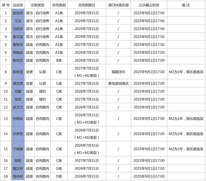 其中,今夏加盟球队的陈林坚的合同类别为C类,合同到期日为2027年7月31日(M1+M2类型,M2为1年,俱乐部选项)。