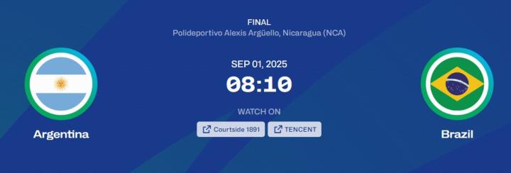 篮球也是你俩,男篮美洲杯决赛对阵:巴西vs阿根廷蓝司机学姐 @懂球帝2025-08-31 10:28北京时间8月31日,男篮美洲杯半决赛的比赛已经全部结束。巴西和阿根廷双双晋级决赛。在半决赛中,巴西男篮92-77逆转美国,而阿根廷83-73力克加拿大。这是两队连续第二次在美洲杯决赛碰面,上届美洲杯决赛,阿根廷75-73险胜巴西夺得冠军。值得一提的是,在上一届男篮美洲杯的半决赛,阿根廷淘汰美国,巴西淘汰了加拿大。男篮美洲杯决赛将于9月1日早上8:10开打。展开更多