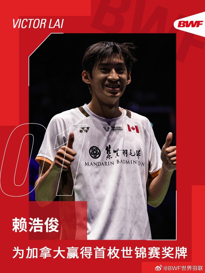 8月31日,羽毛球世锦赛男单半决赛:“黑马”赖浩俊1-2不敌石宇奇,赛后他在采访中谈及斩获铜牌表示:未来可能更专注于羽毛球,暂时搁置学业。