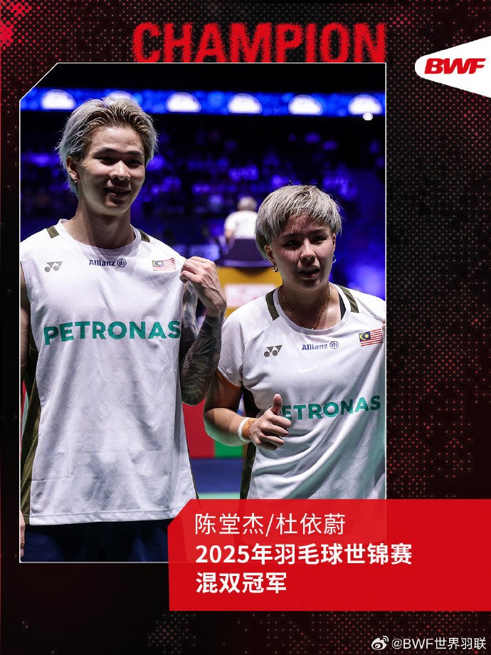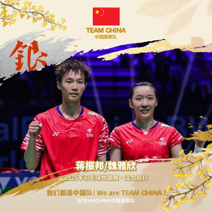 蒋振邦/魏雅欣0-2不敌马来西亚组合,获得世锦赛混双亚军gaoniu @懂球帝2025-08-31 19:57北京时间8月31日,羽毛球世锦赛混双决赛,蒋振邦/魏雅欣0-2(15-21、14-21)不敌马来西亚组合陈堂杰/杜依蔚,获得本次世锦赛亚军。 另一对国羽混双组合郭新娃/陈芳卉,摘得铜牌。这是“丫邦”组合的第二届世锦赛,从上一届的铜牌升级为银牌。陈堂杰/杜依蔚成功夺冠,创造马来西亚混双新历史,这是马来西亚在混双项目的首枚世锦赛金牌。展开更多