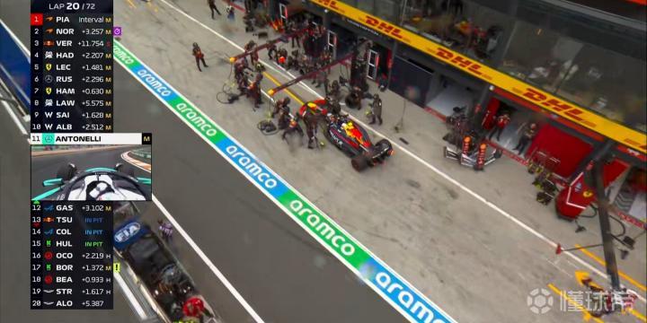 第20圈:角田的软胎进站执行一停,出站后被阿隆索undercut;